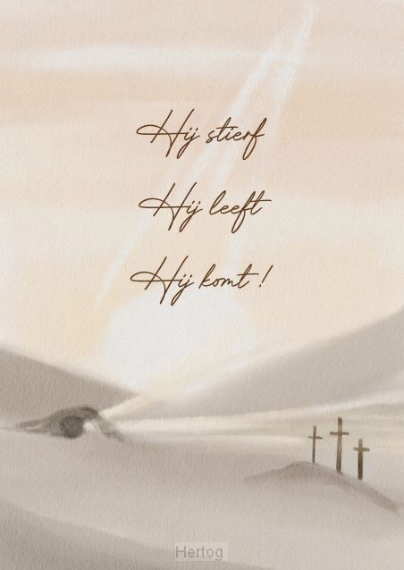 Opdruk: Hij stierf Hij leeft Hij komt!